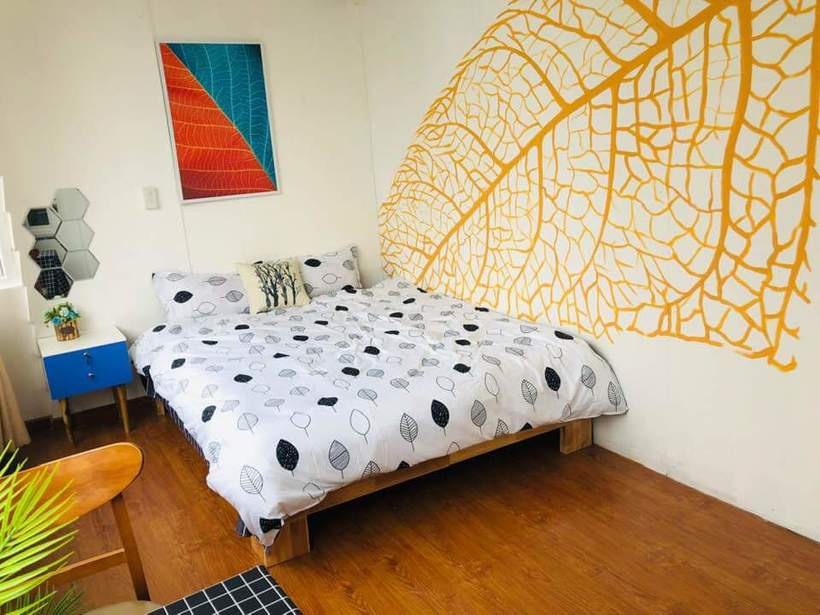 Căn bếp nhỏ có đầy đủ đồ dùng như bếp nấu, bát dĩa, gia vị… để khách lưu trú có thể tự mình nấu một bữa ăn thịnh soạn. Homestay có 4 phòng ngủ gồm 2 phòng đôi và 2 phòng giường tầng công suất 4 người. Nếu như ngoại cảnh là một màu đen bí ẩn, gian khách rộng rãi với gam màu trắng tinh khôi thì mỗi căn phòng riêng lại là đa dạng sắc màu. Với cách decor độc đáo, tuy không quá nhiều đồ trang trí những bằng sự phối màu tinh tế tạo nên không gian nghỉ ngơi xinh đẹp vô cùng.