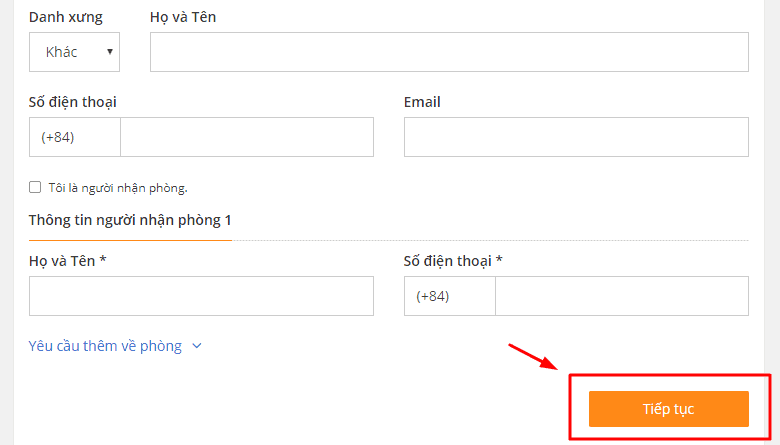 Bước 2. Điền Thông tin đặt phòng của bạn và bấm Tiếp theo.