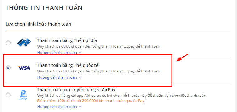Bước 4. Tại Cổng thanh toán 123Pay, điền thông tin Thẻ thanh toán quốc tế VietBank Visa của bạn và hoàn tất đặt phòng.