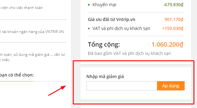 Bước 3. Tại bước Xác nhận thông tin đặt phòng, lựa chọn thanh toán bằng Thẻ thanh toán quốc tế, sau đó nhập mã VIETBANK2019 tại ô “Mã giảm giá”. Kiểm tra lại thông tin đặt phòng và chọn Tiếp tục để hoàn tất đơn phòng của bạn.