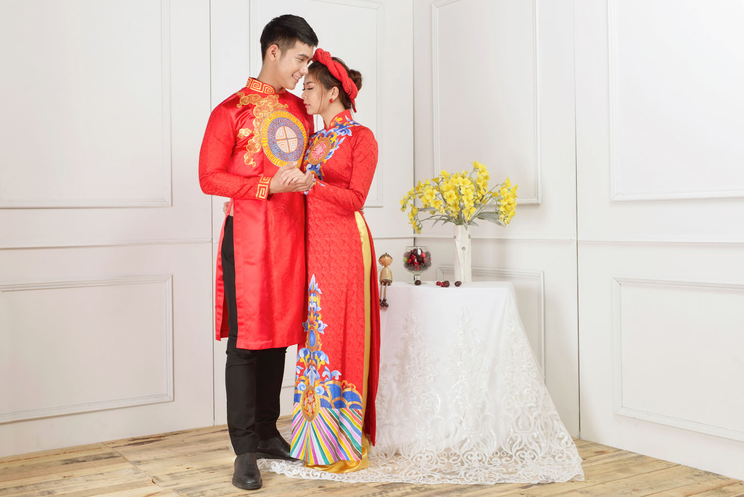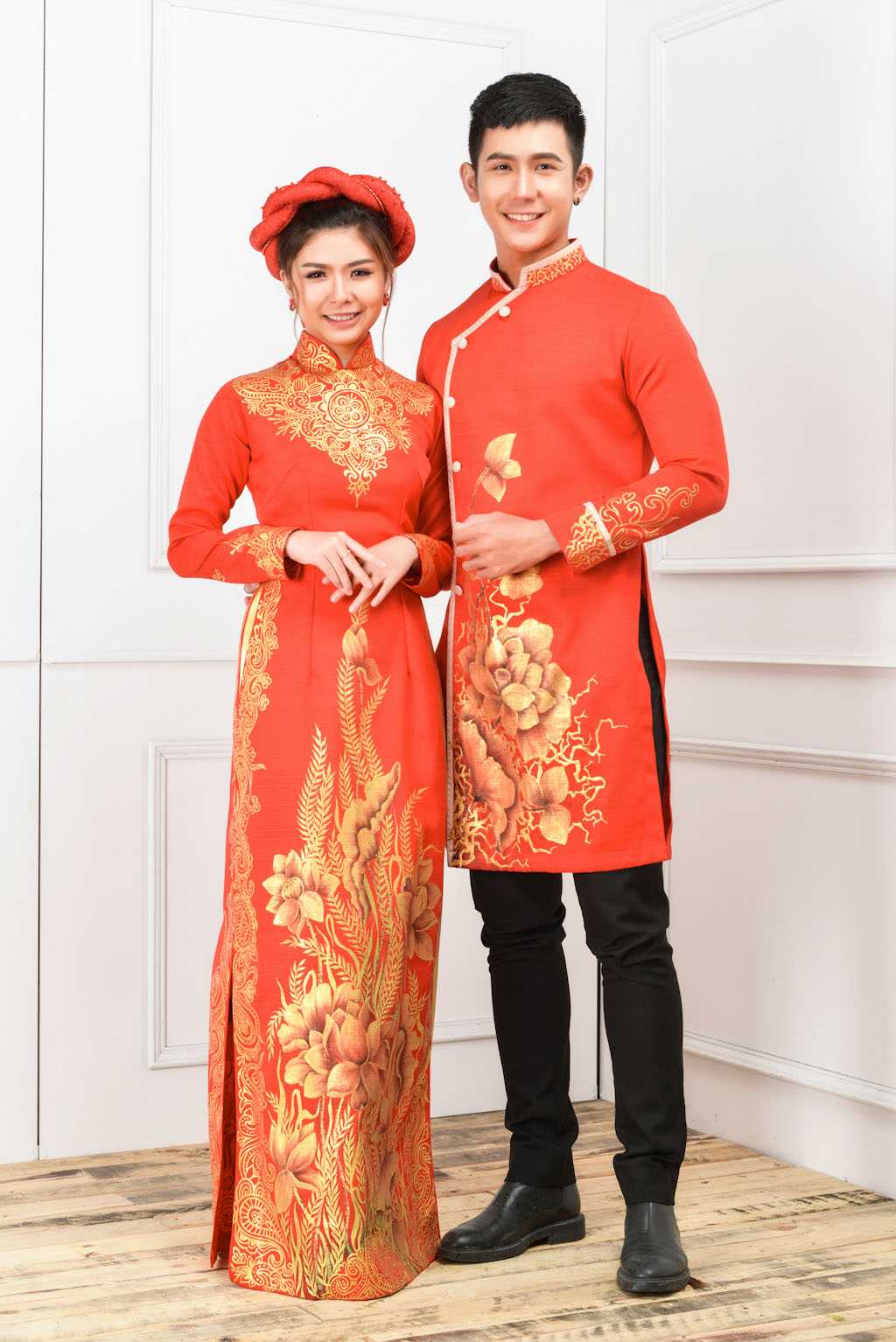 Những mẫu thiết kế cùng hoa văn, cùng chất liệu vẫn đang là xu hướng “hot” cho các cặp đôi. Hình tượng cổ điển hoa sen, phượng hoàng được sử dụng một cách linh hoạt và ấn tượng.