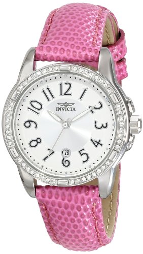 Invicta Women’s 16339 Angel Crystal-Accented Stainless Steel Watch with Pink Leather Strap