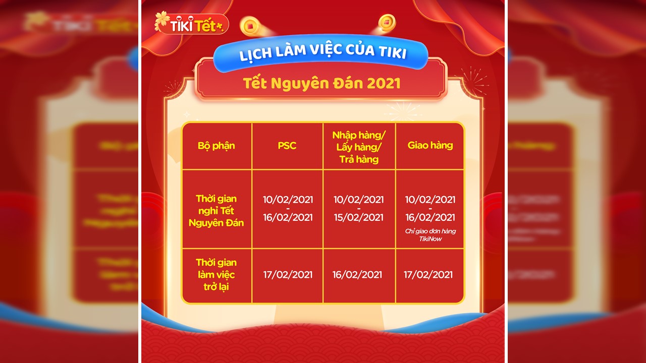 Tiki – Thông báo lịch làm việc Tết Nguyên Đán 2021