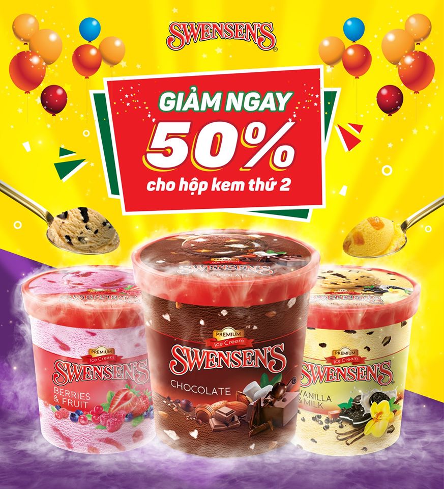 Sau thời gian vắng bóng, Swensen’s đã tặng ngay món quà yêu thương dành cho các Fan với ưu đãi GIẢM 50% khi mua hộp Quart thứ hai. Đây là cơ hội để lấp đầy tủ kem nhà bạn với đầy đủ hương kem mà bạn thầm mong nhớ suốt thời gian vừa qua.