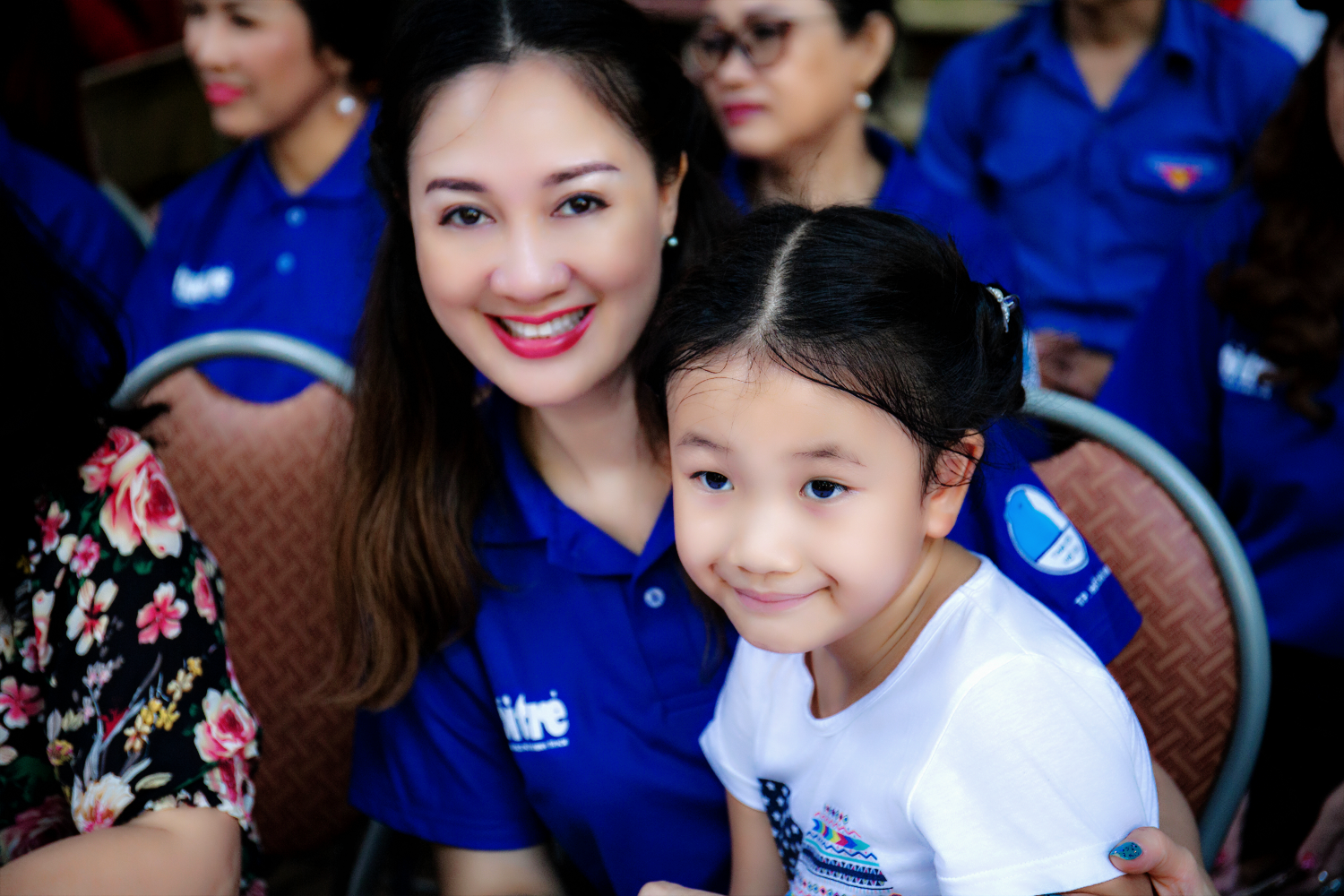 Cả hai mẹ con hoa hậu cùng hoà mình vào dòng người nhiệt tình ủng hộ chương trình