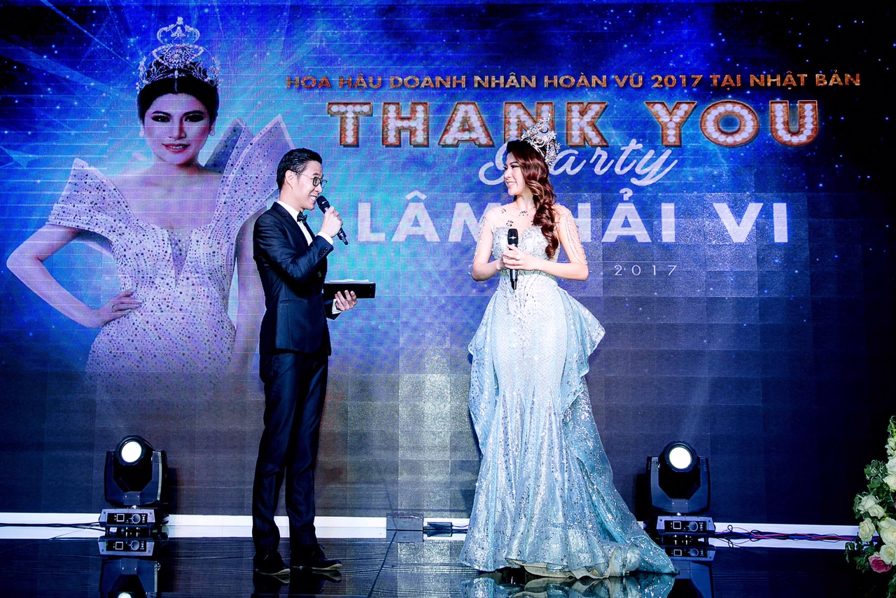 PHONG CÁCH SAO – Tối ngày 31/10/2017, Hoa hậu Lâm Hải Vi đã tổ chức tiệc Thanks Party để tri ân các đơn vị truyền thông, gia đình, bạn bè đã ủng hộ cô trong suốt thời gian tham gia cuộc thi Hoa hậu Doanh nhân Hoàn vũ tại Nhật Bản cũng như hoạt động của cô sau khi về trở về.