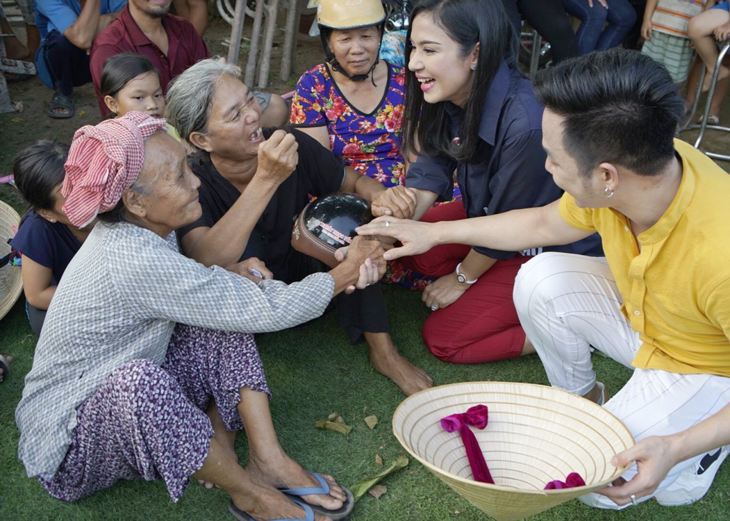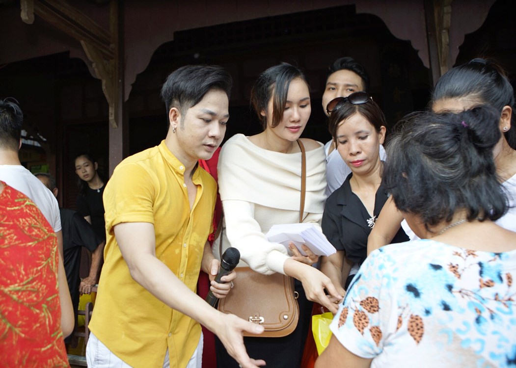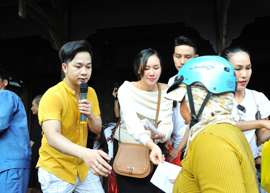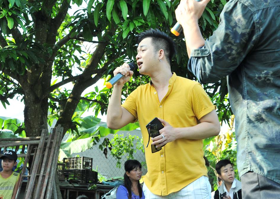 Quách Tuấn Du diện áo vàng nổi bật, anh liên tục phải lau mồ hôi vì đón tiếp thăm hỏi cũng như thể hiện nhiều tiết mục văn nghệ tặng bà con. Cùng với nam ca sĩ, Việt Trinh cũng như nhiều nghệ sĩ như Hoa hậu Kim Nguyễn, ca sĩ Trang Thơ, Hoàng Kỳ Nam, Hoàng Tấn Phương, Mạnh Cường,… liên tục cùng nhau khuấy động không khí giao lưu với bà con quê nghèo.